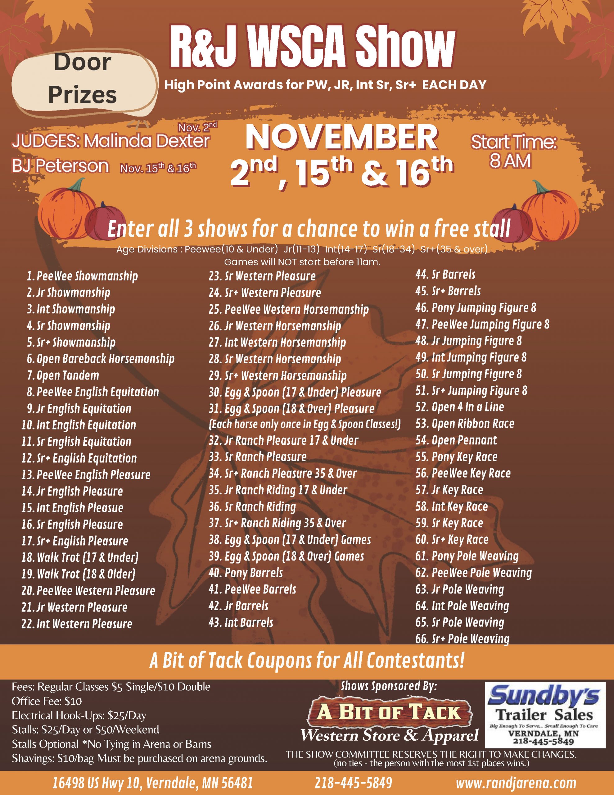 | More Info:: | WSCA PLEASURE AND GAME SHOW. Start time 8:00 AM |