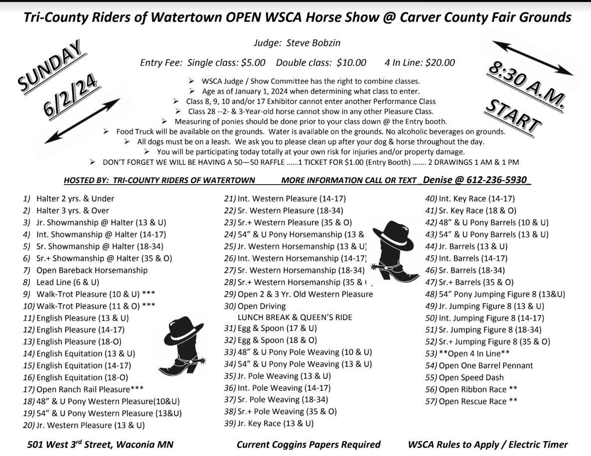 | Location*: | Carver County Fairgrounds Waconia MN |
